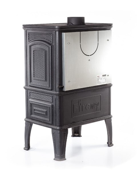 Чугунная печь-камин Fireway Dacha 2 идеально подходит для отопления помещений объемом до 240 кубометров и приготовления пищи благодаря встроенной варочной поверхности. Эффективное распределение тепла обеспечивает комфортную температуру в доме, а панорамная дверца позволяет наслаждаться видом пламени. При компактных размерах (ширина – 540 мм, высота – 945 мм) модель отличается высокой мощностью – до 12 кВт. Простота монтажа обеспечивается пристенным типом установки и возможностью вывода дымохода как сзади, так и сверху.