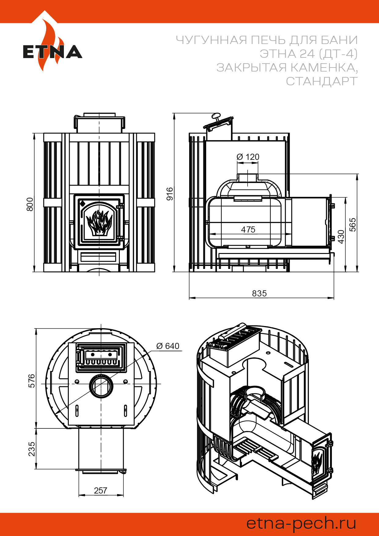 Печь ЭТНА Стандарт 24 (ДТ-4) идеально подходит для различных типов бань и саун, обеспечивая необходимые параметры микроклимата. Классический чугунный корпус толщиной 8 мм гарантирует длительный срок службы и эффективное теплосбережение.