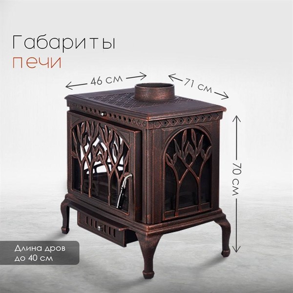 Откройте для себя уют и тепло чугунной печи-камина «LOKI Forest Bronze»! Идеально подходит для помещений объемом до 380 м³, обеспечивая комфортное отопление благодаря мощности в 14 кВт. Панорамное стекло из трёх стёкол позволяет наслаждаться видом горящих поленьев со всех сторон. Удобство эксплуатации обеспечивает компактный размер (высота — 700 мм) и пристенная установка. Изготовленная в России из качественного чугуна толщиной 8 мм, эта модель станет надежным источником тепла и стильным элементом интерьера вашего дома.