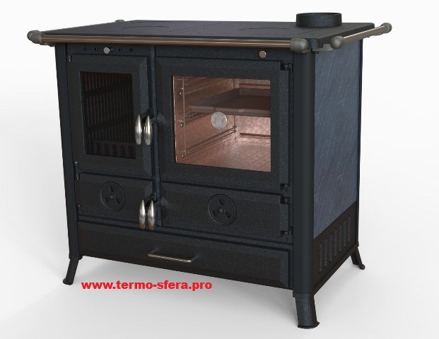 Качественный чугунный пристенный камин с духовкой FIREWAY с дверцей панорамного стекла. Стильный дизайн черного (антрацита) цвета гармонично впишется в любой интерьер. Особенности модели: - Объем обогреваемого помещения – до 120 куб.м.; - Максимальная мощность — 8 кВт; - Удобная варочная плита и духовой шкаф позволяет готовить и разогревать пищу прямо у себя дома; - Диаметр подключения дымохода — 150 мм., выход сзади. Производство – Россия.