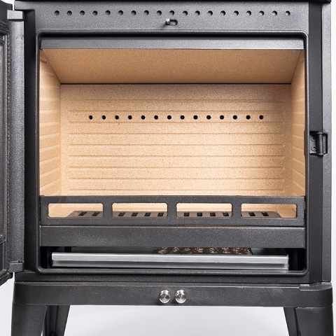 Печь-ками́н «Solo» от Fireway — отопительный уют вашего дома! Эта чугунная модель с панорамной дверцей идеально впишется в любой интерьер благодаря стильному черному цвету (антрара). Оптимальна для помещений объемом до 220 м³, мощность 11 кВт быстро согреет дом. Установка проста: пристенная конструкция, удобный задненавесной выход дымохода + вариант выхода сверху. Надежно и эстетично!