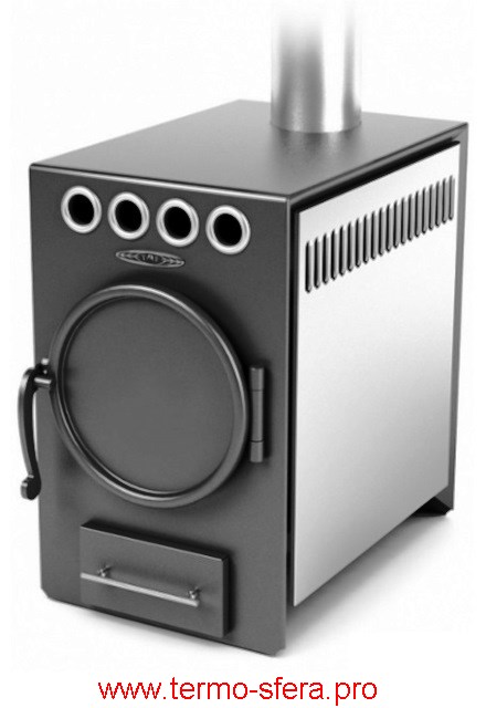 Эффективное отопление помещений до 120 м³ обеспечивает дровяная печь «Нормаль-2 Турбо» от российского производителя ТМФ. Благодаря стальной конструкции толщиной 3 мм и компактным размерам (Ш×В×Г: 330×500×600 мм), она легко устанавливается даже в небольших помещениях. Выход дымохода сверху упрощает монтаж, а диаметр дымового патрубка 115–120 мм подходит под стандартные трубы. Удобен длинный топливник — позволяет использовать дрова длиной до 410 мм. Печь обладает мощностью 8 кВт при экономичном весе всего 49 кг. Идеальна для дачи или загородного дома!