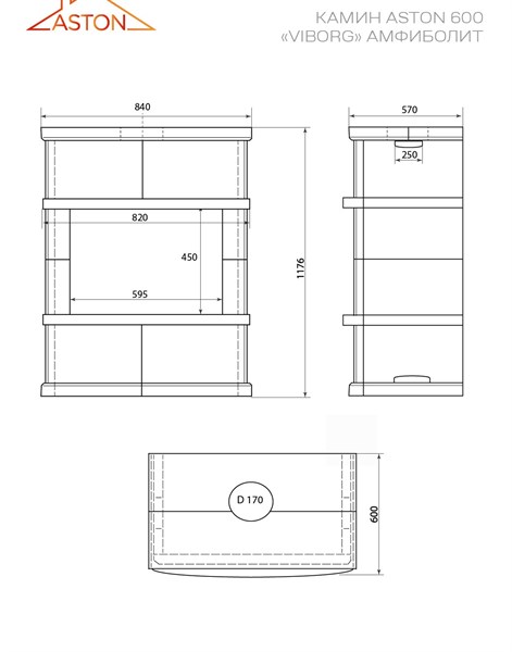 Тепло и уют вашего дома — камин ASTON 600 Vyborg из прочной стали и натурального амфиболита. При мощности 10 кВт он обогреет помещение объёмом до 200 кубометров. Панорамное стекло дверцы подарит великолепные виды игры пламени, а вермикулитовая футеровка обеспечивает долговечность и безопасность использования. Устанавливается просто и быстро благодаря пристенному типу монтажа – подчеркнёт интерьер любого загородного дома или дачи ("Дом и дача"). Искусство уюта от российского производителя!