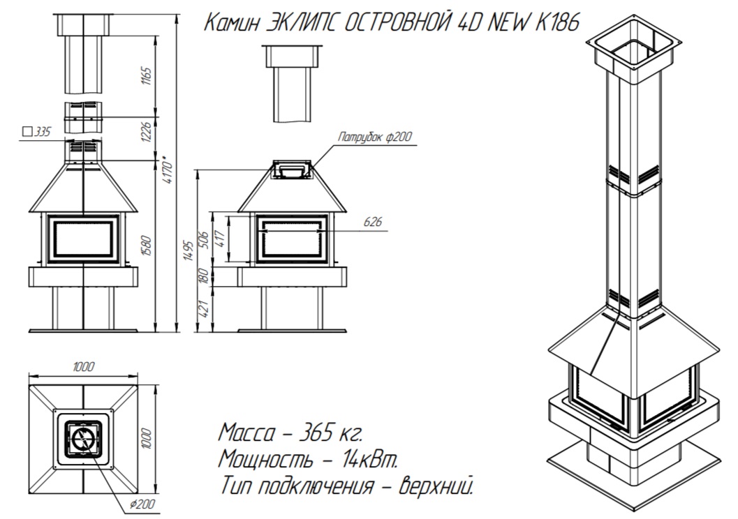 Экокамин «ЭКЛИПС ОСТРОВНЫЙ ГИГАНТ» — это островная модель мощностью 14 кВт из прочной стали толщиной 3 мм, способная отопить помещение объемом до 280 кубических метров. Четырёхстекольная панорамная дверца обеспечивает великолепное зрелище живого огня. Шамотовая футеровка повышает КПД и срок службы камина. Внешняя подача воздуха облегчает горение и экономит тепло. Идеален для просторных помещений благодаря компактным габаритам (1000x4170x1000 мм) и весу всего 365 кг. Сделано в России.
