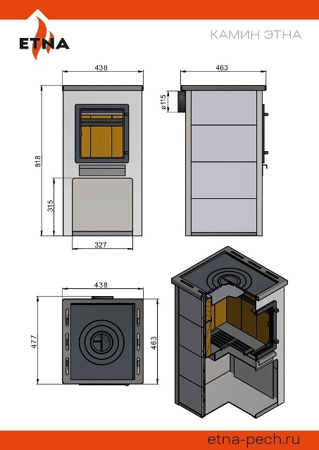 Эффективное тепло для вашего дома! Камин «ЭТНА» от производителя Etna обеспечит комфорт обогреваемого пространства до 150 кубических метров. При своих компактных размерах (ширина – 440 мм, высота – 820 мм), он обладает мощностью 9 кВт и выполнен из стали толщиной 4 мм. Особенность модели — дверь со стеклом и стильный бежевый цвет, гармонично вписывающийся в любой интерьер. Простота пристенной установки делает монтаж быстрым и удобным, а вес изделия всего 140 кг облегчает транспортировку и установку.