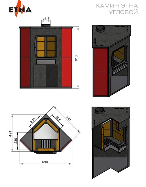 Представляем угловую печь «Этна» — идеальный выбор для отопления помещений объемом до 150 кубометров! Создана из качественной стали толщиной 3 мм., оснащена дверцей со стеклом для наблюдения за пламенем. Встроенная шамотовая футеровка продлевает срок службы устройства и улучшает теплоотдачу. Элегантная бежевая гамма впишется в любой интерьер страны производителя — России. Выходы дымового канала сверху упрощают монтаж. Эффектное сочетание надежности и дизайна!
