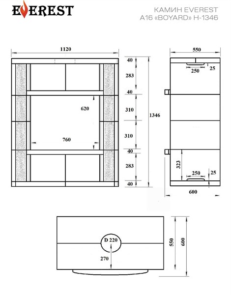 Представляем камин Everest A16 «Boyard», который подарит вашему дому тепло, уют и неповторимую атмосферу настоящего загородного комфорта! Дизайн из амфиболита подчеркивает изысканность интерьера, а панорамное стекло дверцы позволяет наслаждаться игрой пламени во всей красе. Частота чугуна (толщиной 6мм) обеспечивает долговечность конструкции при интенсивном использовании. Мощностью в 16кВт он обогреет помещение объемом до 320м³, эффективно распределяя тепло благодаря продуманной конструкции и удобному диаметру дымоотвода – 200мм. Приятным бонусом станет его компактные габариты (ширина — 1120мм, глубина — 600мм), что позволит установить его даже в небольших помещениях. Сделайте свой дом еще комфортнее вместе с камином Everest!