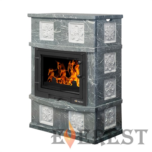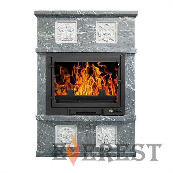 Чудесное украшение интерьера и надежный источник тепла – камин Everest D10 «Pillau». Талькохлоритовый кожух придает изысканность дизайну, а чугунная конструкция гарантирует надежность и долговечность. Мощности в 14 кВт достаточно для обогрева помещений объемом до 280 кубических метров. Панорамное стекло дверцы обеспечивает эстетическое наслаждение игрой огня. Установка пристенная, диаметр дымового канала составляет 180 мм., длина закладываемых дров — до 400 мм. Производится в России компанией Everest из качественных материалов.