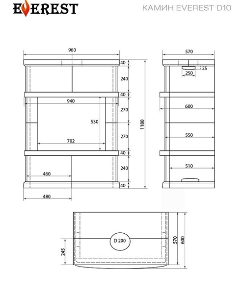 Представляем вашему вниманию камин Everest D10 Vyborg – источник тепла и уюта! Пироксенитовое оформление придаст интерьеру благородства, а чугунная конструкция прослужит долго даже при интенсивной эксплуатации (до 280 кубометров отапливаемого пространства!). Широкая панорамная дверца позволит наслаждаться видом горящего пламени, делая ваши вечера уютными и романтичными! Вместительная топка легко вместит поленья длинной до 42 см. Установка проста и удобна благодаря приставному исполнению и заднему выходу дымохода. Сделайте выбор в пользу надёжности российского производителя Everest!