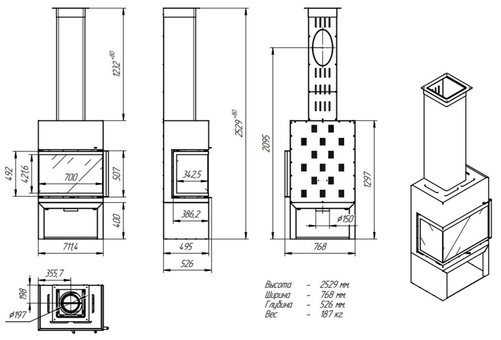 Эффективное отопление дома до 160 м³! Камин «Мадрид» от бренда Экокамин выполнен из стали толщиной 3 мм., имеет футеровку шамотом и панорамную дверцу с тройным остеклением. Установка пристенная, подача воздуха возможна снаружи, что обеспечивает комфорт при эксплуатации. Диаметр дымохода – 200 мм., длина закладки дров достигает полуметра. Удобство использования обеспечивается антрацитовом дизайном и компактными размерами (ширина — 768 мм, высота — 2529 мм). Сделано в России.