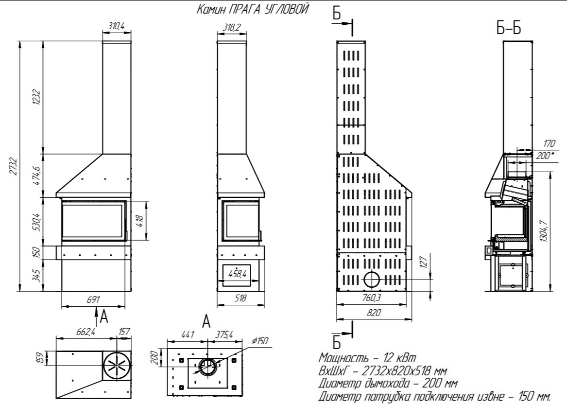 Угловой камин «Прага» от ЭКОКАМИН – стильный акцент вашего интерьера! Предает помещению уют и тепло мощностью до 12 кВт (обогрев до 240 м³). Шамотная футеровка обеспечивает долговечность, а двойное панорамное стекло гарантирует эстетическое наслаждение огнем. Доступ подачи топлива извне делает использование удобным и безопасным. Цвет антрацита гармонично впишется в любой интерьер изяществом черных линий. Сделано в России.