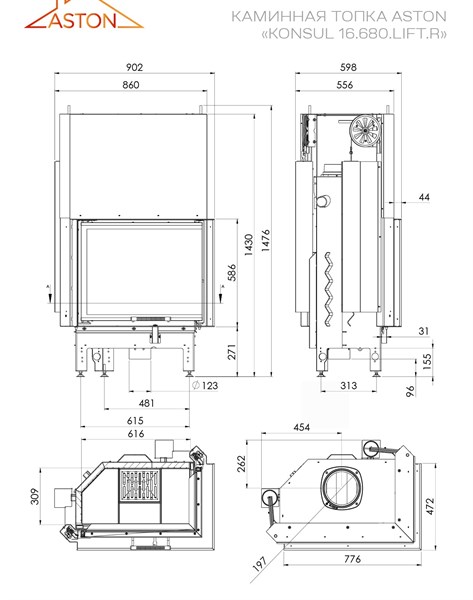 Эффективное отопление дома до 320 м³! Отличительные особенности каминной топки Aston Konсул 16.680 Lift R — мощность 16 кВт, удобство обслуживания благодаря поднимающейся панорамной двери с двойным стеклом, подача воздуха снаружи предотвращает проникновение дыма. Современные решения безопасности и долговечности реализованы в конструкции из стали с футеровкой вермикулитом. Сделано в России; вес 217 кг, диаметр дымохода 200 мм.