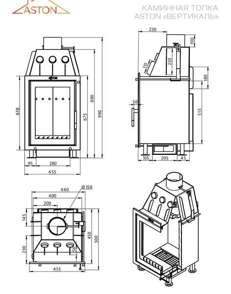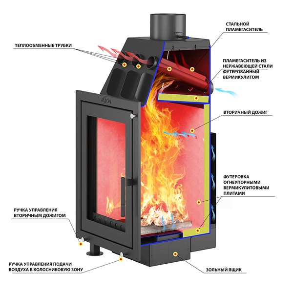 Откройте для себя уют огня с каминной топкой Aston Вертикаль! Мощностью 10 кВт обогреет помещение до 200 м³. Стильный антрацитовый чугун подчеркнет изысканность интерьера. Дверца с панорамным стеклом позволит наслаждаться пламенем во всей красе. Простота использования благодаря боковому открыванию двери и выходу дымохода сверху. Сделано в России – качество и надежность на вашем очагу.