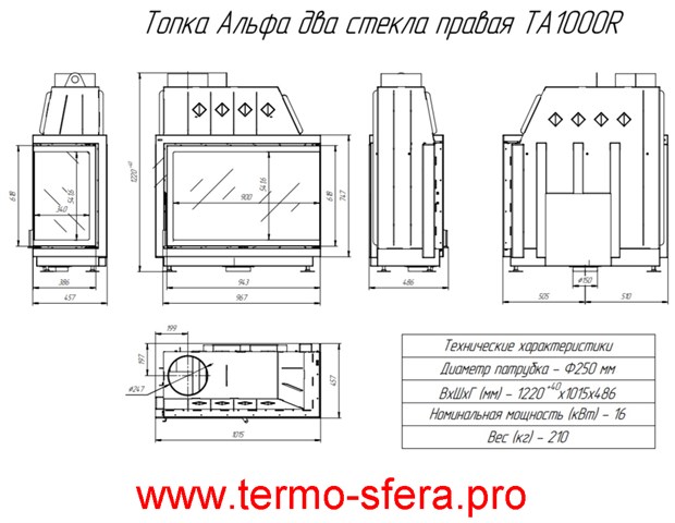 Откройте мир настоящего уюта и тепла с каминной топкой «Экокамин Альфа 1000R» от российского производителя ЭКОКАМИН! Блок из стали с футеровкой белым шамотом обеспечивает надёжную работу при мощности до 16кВт, обогревая помещение объёмом до 320м³. Двухстекольная дверца позволяет наслаждаться игрой пламени, а подача воздуха изнутри гарантирует безопасное и эффективное горение. Выбор в пользу антрацитового дизайна – это всегда выигрышно!