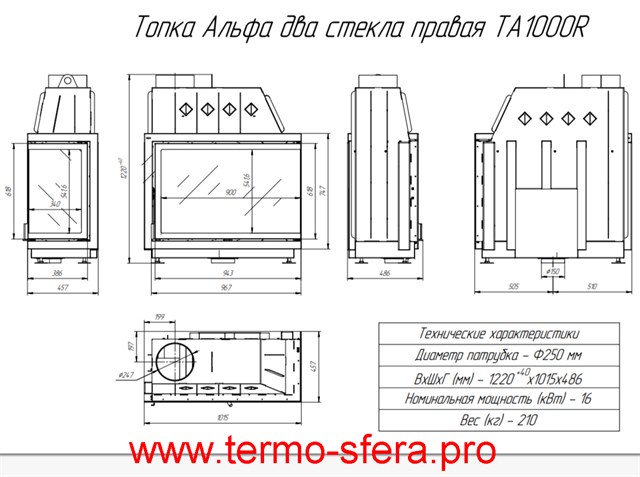 Эффективное отопление дома с минимальными затратами – каминная топка «Экокамин Альфа 1000 RB» обеспечит теплом помещение объемом до 320 куб.м., обладая мощностью 16 кВт. Два стекла дверцы обеспечивают приятный вид пламени и высокую теплоотдачу. Черный шамот продлевает срок службы устройства. Внешняя подача воздуха упрощает эксплуатацию. Использование российской стали гарантирует надежность и долговечность изделия от производителя "ЭкоКамин". Termosfera pro - ваш надежный партнер в уюте и тепла в доме.