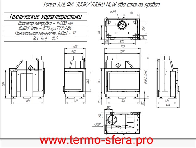 Откройте для себя идеальное сочетание стиля и функциональности – каминную топку «Экокамин Альфа 700 RB» от российского производителя ЭКОКАМИН! Два больших стекла обеспечивают завораживающий вид огня, а подача воздуха снаружи гарантирует безопасность и эффективность работы (мощность до 12 кВт). Подходит для помещений объемом до 240 куб.м., выполнена из прочной стали с футеровкой чёрным шамотом для долговечности. Встраивается легко, вес всего 142кг. Эстетика и тепло у вас дома! Магазин термосфера.про