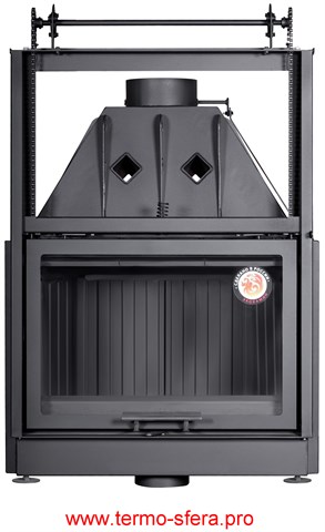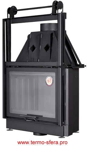 Эффективное обогревание помещений объемом до 300 куб.м обеспечивает каминная топка «Экокамин Альфа 800 K» мощностью 15 кВт. Изготовленная из стали и футерованная черным шамотом, она гарантирует надежность и долговечность. Антрацитовый цвет гармонично впишется в любой интерьер. Компактные размеры (ширина — 843мм, высота – 1289мм) позволяют удобно разместить устройство даже в небольших помещениях. Выходы дымохода организованы сверху. Удобство использования обеспечивается дверцей со стеклом. Диаметр дымового канала составляет 200 мм. Производится в России компанией ЭКОКАМИН.