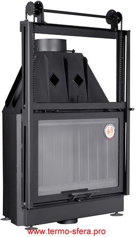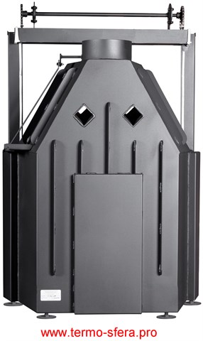 Эффективное обогревание помещений объемом до 300 куб.м обеспечивает каминная топка «Экокамин Альфа 800 K» мощностью 15 кВт. Изготовленная из стали и футерованная черным шамотом, она гарантирует надежность и долговечность. Антрацитовый цвет гармонично впишется в любой интерьер. Компактные размеры (ширина — 843мм, высота – 1289мм) позволяют удобно разместить устройство даже в небольших помещениях. Выходы дымохода организованы сверху. Удобство использования обеспечивается дверцей со стеклом. Диаметр дымового канала составляет 200 мм. Производится в России компанией ЭКОКАМИН.