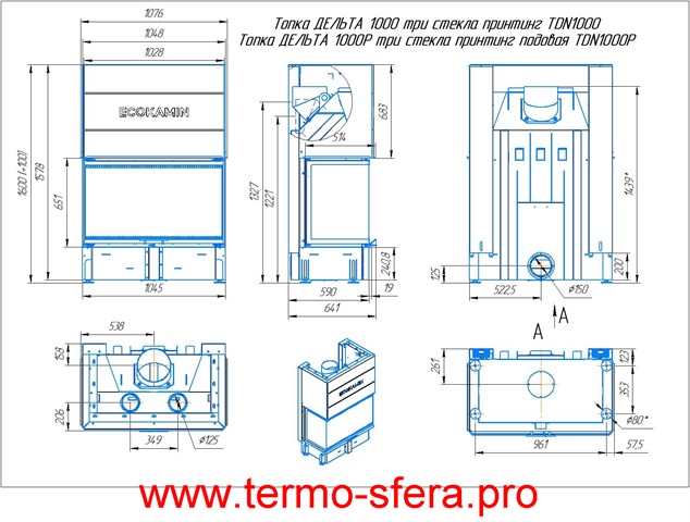 Элегантная каминная топка «ДЕЛЬТА 1000 P» от российского бренда ЭКОКАМИН – это оптимальное решение для обогрева помещений объемом до 360 куб.м., обеспечивающее мощность до 18 кВт. Три стеклянных двери обеспечивают великолепный обзор пламени и безопасность использования. Шамотовая футеровка продлевает срок службы изделия, а подача воздуха снаружи повышает эффективность работы. Установка облегчается возможностью вывода дымохода сверху либо сзади. Идеальный выбор для комфорта Вашего дома!
