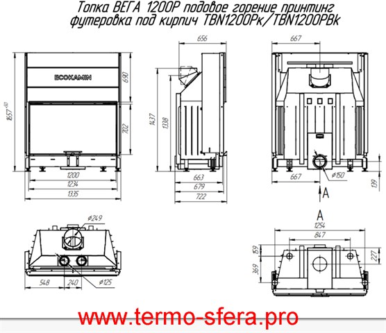 Эксклюзивный камин «Вега 1200» от российского бренда EcoCamino – это стильный акцент вашего интерьера! На нем просто невозможно остановить взгляд благодаря элегантному антрацитовому цвету и мощной конструкции из стали и черного шамота. Теплоотдача этой модели достигает целых 18 кВт — хватит тепла даже на небольшой коттедж (до 360 куб.м). Дымоход подключается сзади либо сверху по вашему выбору плюс есть подача воздуха снаружи! Подчеркните свое чувство стиля вместе с экологичным теплом собственного дома!