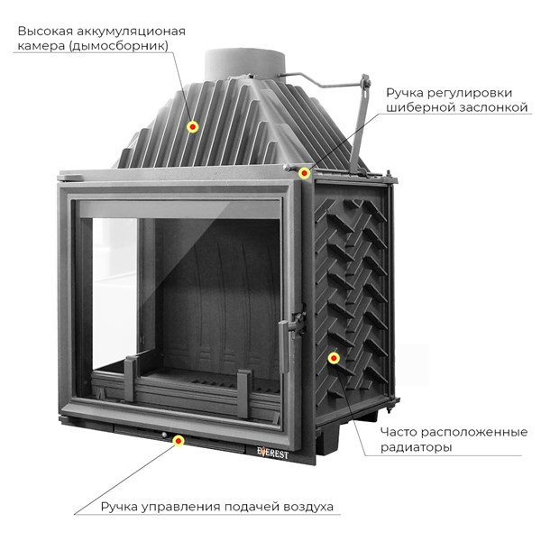 Откройте сезон уюта с каминной топкой EVEREST A16 L! Идеально подходит для просторных помещений (до 320 м³), обеспечивая эффективное отопление мощностью 16 кВт. Стильный антрацитов дизайн подчеркнет ваш интерьер, а двойное стекло двери гарантирует завораживающий вид огня. Чугунное исполнение обеспечивает надежность и долговечность. Изящные габариты (ширина – 760 мм, высота – 900 мм) позволяют гармонично вписать модель в любой интерьер. Сделано в России.