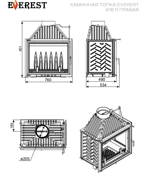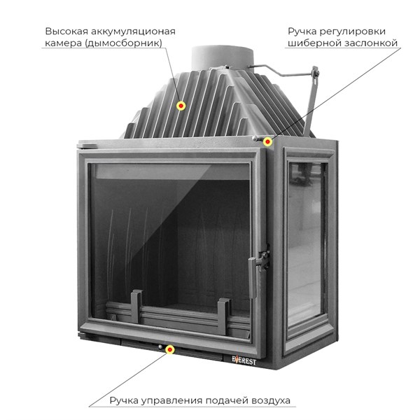 Чугунная каминная топка EVEREST A16 R – оптимальное решение для отопления помещений объемом до 320 м³ благодаря мощности 16 кВт. Двустекольная конструкция обеспечивает великолепный обзор пламени, а боковое открывание дверцы делает использование удобным и безопасным. Двухстенный корпус из качественного чугуна гарантирует долговечность конструкции. Модель оснащена верхним выходом дымовых газов (диаметр 200 мм) и выполнена в стильном цвете антрацит. Изготовлена в России компанией EVEREST, признанным экспертом отопительного оборудования.