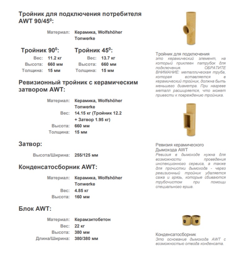 Технические характеристики Дымоходов AWT