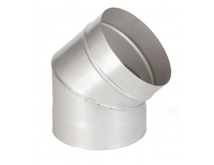 Колено 135° еще называют отводом и часто ошибаются называя его коленом на 45 градусов, изготавливается из 2 секций, применяют, для смещении оси дымохода когда надо обойти лагу или любое препятствие .а так же при замене печи на другую модель чтобы совместить ось существующего дымохода с патрубком новой печи или котла. Колено выполеннео из нерж. стали 1 мм. От производителя ECOFLUE.