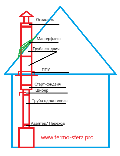 Элементы дымохода могут быть добавлены или убраны по Вашему желанию.