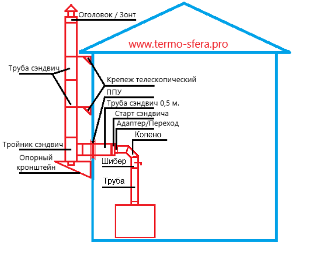 1 мм. Труба-сэндвич мм 0,5 метра. - 1 шт.