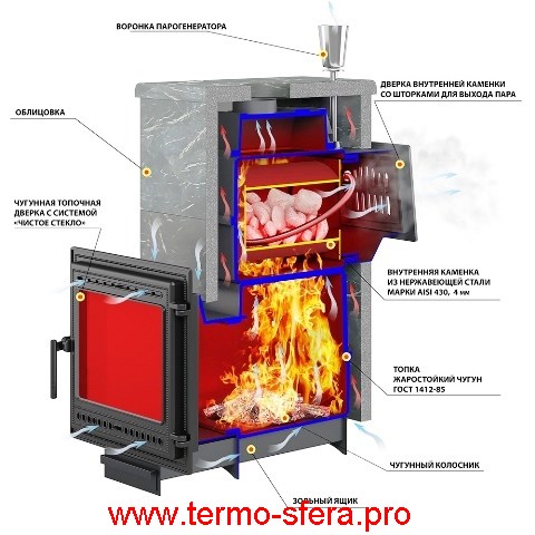 Чугунный комплект «Легенда Русский пар 18» от производителя «Везувий» — идеальное решение для русской бани! Подходит для помещений объемом до 18 куб.м., оснащен закрытой каменкой и дверцей типа панорама, что обеспечивает равномерное прогревание воздуха и визуальное удовольствие при наблюдении за огнем. Выносная топка позволяет подкладывать дрова, не заходя внутрь парилки. Простота установки благодаря продуманному дизайну и качеству исполнения из пироксенита и чугуна толщиной 8мм. Сделано в России.