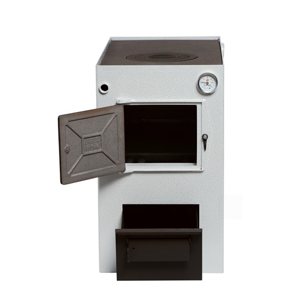 Котел Сибирь НМК КВО-15 — надежное решение для автономного отопления помещений площадью до 150 кв.м., работающее на угле и дровах. Компактные габариты (Ш×В×Г: 420×700×720 мм) позволяют установить его даже в небольших помещениях. Благодаря варочной плите с одной конфоркой котел можно использовать для приготовления пищи. Возможна установка электрических ТЭНов мощностью 3 и 6 кВт, что повышает комфорт использования. Дополнительная комплектация регулятором тяги и пультом для ТЭНов обеспечивает удобство эксплуатации.