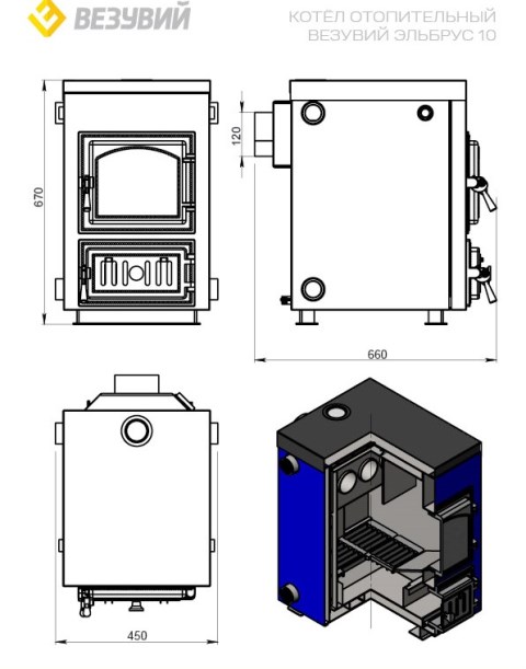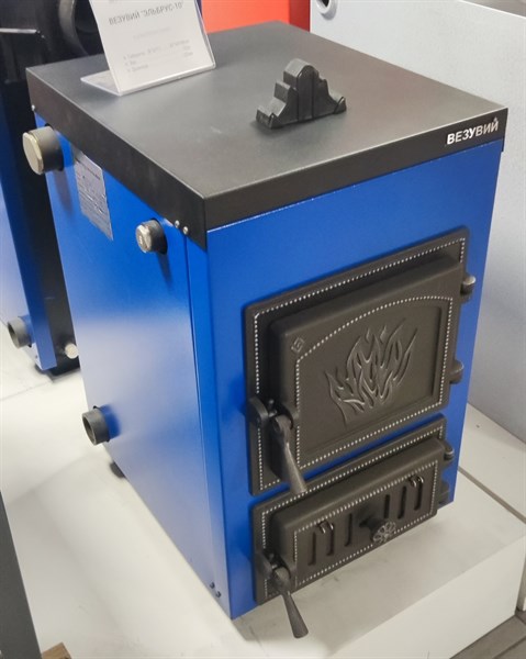 Эффективное отопление дома площадью до 100 кв.м. с минимальными затратами — это возможно благодаря котлу «Везувий Эльбрус-10». Изготовленный из стали толщиной 3мм., он оснащён удобной задним выходом дымохода (диам.120мм.), возможностью подключения ТЭНа мощностью от 3 до 6кВт и регулятором тяги. Удобная глубокая топка объёмом 36л. позволяет загружать дрова крупного формата. Компактен при монтаже (габариты ШхГхВ=450x660x670мм), вес 107кг.