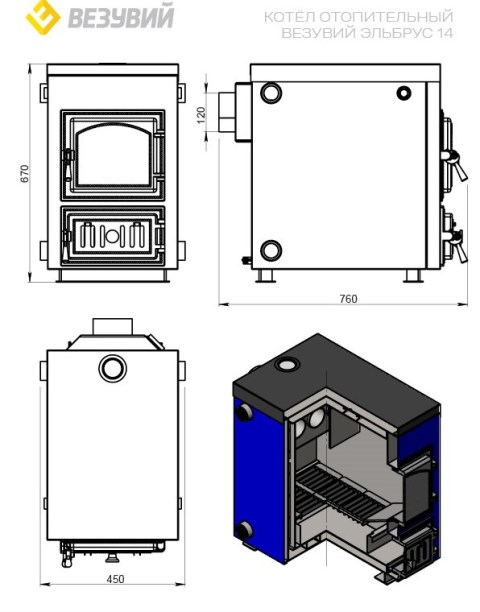 Эффективное отопление дома площадью до 140 м² обеспечивает стальной котёл «Везувий Эльбрус-14». Благодаря мощности 14 кВт, толщине стали 3 мм и объёму топки 48 литров он гарантирует стабильную работу и экономию топлива. Возможна установка электрических ТЭНов (до 6 кВт) и подключение регулятора тяги либо пульта управления — это упростит эксплуатацию и повысит комфорт использования. Удобен в монтаже благодаря заднему выходу дымохода диаметром 120 мм.