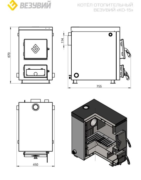 Эффективное отопление дома площадью до 150 кв.м с минимальным расходом дров — это котёл «Везувий КО-15». Изготовлен из прочной стали толщиной 3 мм, оснащён удобной глубокой топкой объёмом 44 литра. Возможна установка электрического ТЭНа мощностью 3 или 6 кВт (по желанию), а также регулятор тяги и пульт для контроля работы ТЭНов. Идеален для автономного отопления загородных домов и дач.