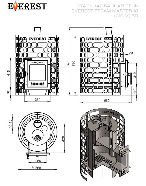 Печь для бани «Everest Steam Master» с дверцей 210М без выносной топки, топится из парной— идеальный выбор для вашего комфорта! Обогревает помещение до 18 м³, позволяя наслаждаться теплом и уютом двери со стеклом обеспечивает наблюдение за огнем. Надежность конструкции из стали толщиной 4 мм гарантирует долговечность. Закрытая каменка ускоряет прогрев помещения, а выносная топка упрощает использование массы дров. Ковкий российский производитель Everest подтверждает качество изделия.