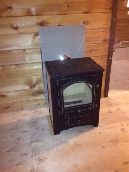 Установка печи камина ВЕЗУВИЙ ПК-01 (205) с плитой с дымоходом через стену в двухэтажном доме.