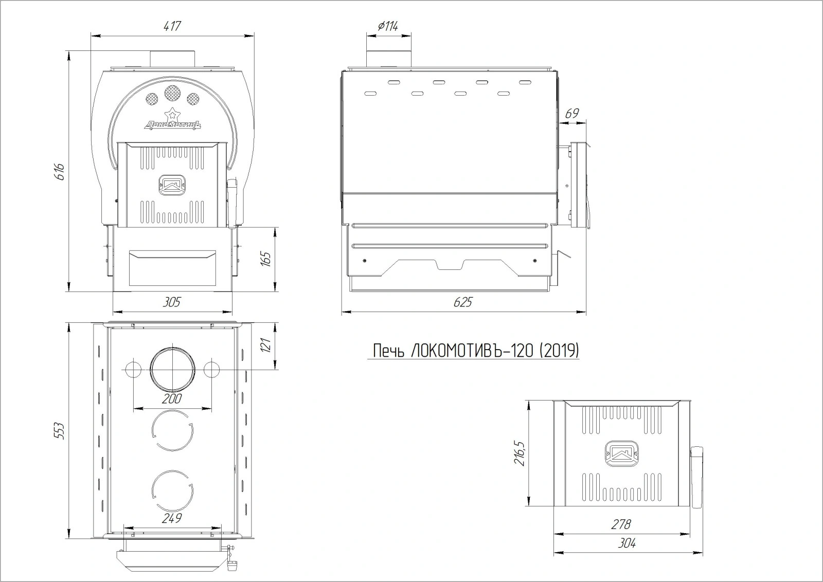 Представляем печь Теплодар «Локомотив-12» — мощное решение для обогрева помещений до 120 м³! Обогрев и приготовление пищи одновременно благодаря варочной плите с двумя конфорками. Сделана из стали повышенной прочности толщиной 3 мм., что обеспечивает надежность и долговечность. Корпус черного цвета идеально впишется в любой интерьер. Продукт российского производства от бренда Теплодар – качество, которому можно доверять!