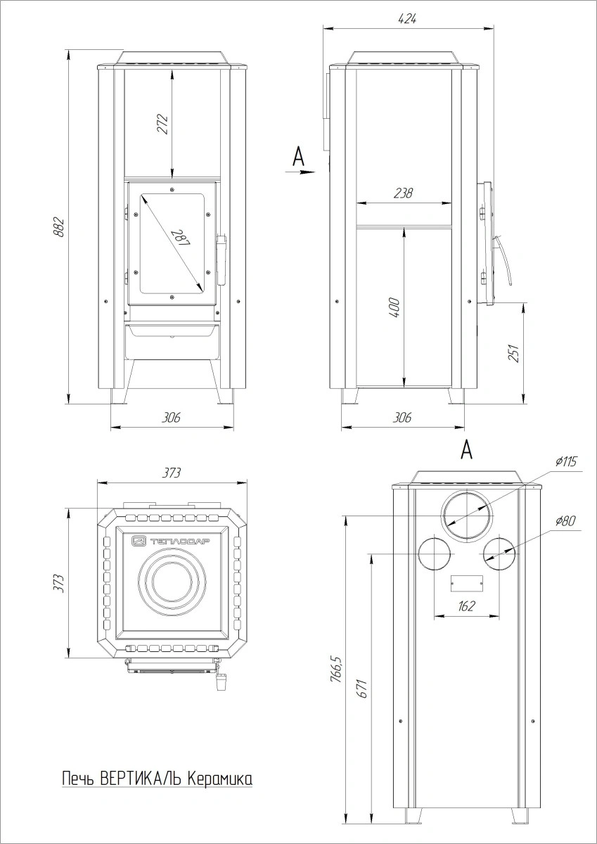Теплодар Печь Вертикаль керамика — оптимальное решение для обогрева помещений объемом до 120 м³! Благодаря стальной конструкции толщиной 3 мм и компактным размерам (Ш×В×Г: 373×878×373 мм), она легко впишется даже в небольшое пространство.