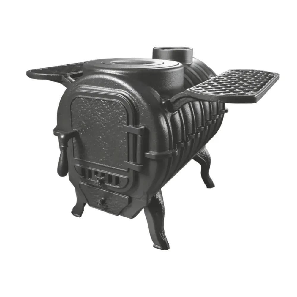 Чугунная отопительно-варочная печь «Тайга» от PROMETALL мощностью 9 кВт эффективно обогреет помещение объёмом до 100 кубических метров. Благодаря варочной плите диаметром вы сможете готовить пищу или нагревать воду. Выход дымового канала сверху облегчает монтаж, а толщина стенок в 9 мм. и толщина дня 16 мм. обеспечивает долговечность конструкции. Вес печи всего 65 кг делает её удобной для транспортировки и установки.