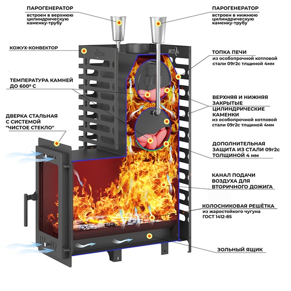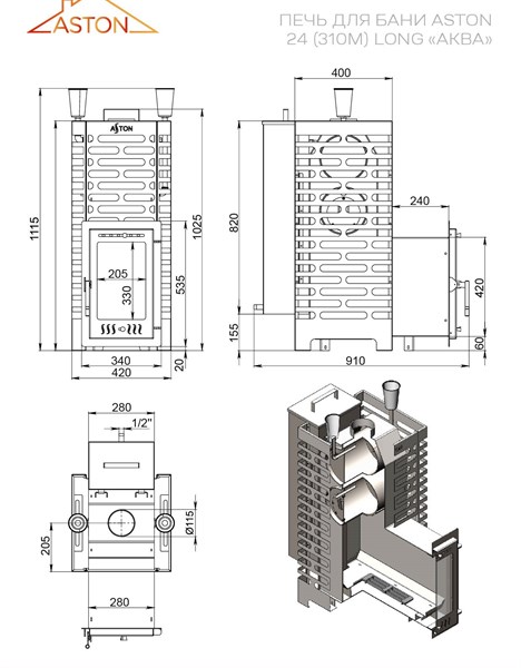 Ну что ж, баньки любишь? Хочешь получить максимум удовольствия при минимуме хлопот? Тогда печь «ASTON 24 (310М) Long АКВА» — твой идеальный выбор! Закрытая каменка и сетка на 210кг камня создаст ароматный пар, выносная топка облегчит загрузку дров, а бак для воды обеспечит горячей водой для запаривания веников и душа. А сетка-кожух добавит изюминку дизайну твоей парной! Сделано в России качественно и надежно – тепло и уют гарантированы!