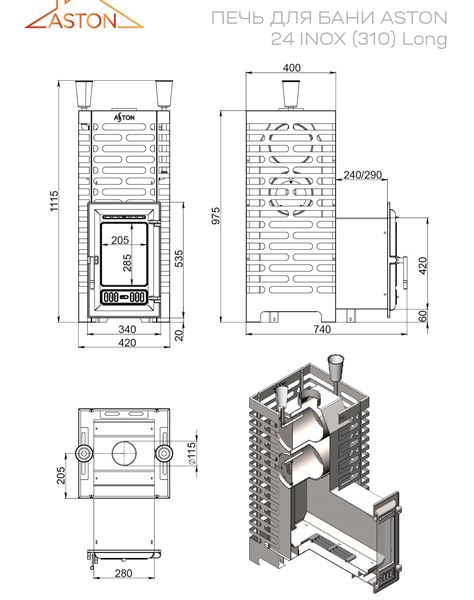 Профессиональное решение для бань объемом до 26 кубометров! Печь ASTON 24 INOX (310) Long из нержавеющей стали обеспечит быстрый нагрев помещения благодаря выносной топке и чугунной двери с остеклением. Удлиненная конструкция топки позволяет эффективно использовать дрова разной длины. Закрытая каменка вмещает 210 кг камней, обеспечивая стабильную подачу пара. Производительность, надежность российского качества и эстетика – идеальный выбор для вашего комфорта в бане!