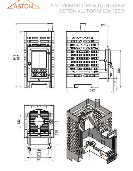 Чугунная печь "Шторм 20" от бренда ASTON быстро нагреет баню объемом до 20 куб.м., обеспечивая комфортное пребывание благодаря закрытой каменке и дверце со стеклом 350. Легкость установки обеспечивается выносной топкой; Дымоход диаметром 120 мм подходит к большинству систем. Мощность и качество российского производства – масса загрузки камней составляет 135кг, вес самой модели всего 101кг. Экономьте время и дрова при нагреве вашей бани!