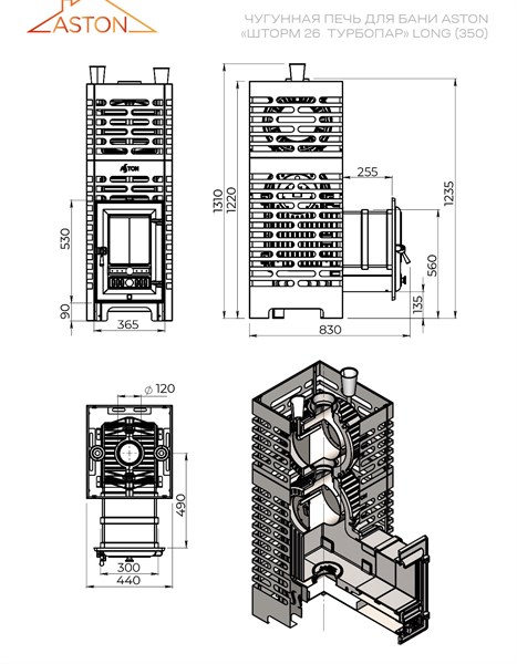 Чудесное тепло чугунного чуда! Печь банная Aston Шторм 26 Турбопар лонг – это комфорт и уют вашей парной всего от 26 кубометров пространства! Закрытая каменка вместимостью 155кг обеспечивает стабильную температуру и целебные пары длительное время. Выносная топка позволяет комфортно растапливать печь даже в тесных помещениях. Кожух-сетка защитит вас от случайных ожогов и станет стильным элементом интерьера. Сделано в России из качественных материалов. Отопите вашу баню выгодно и надежно вместе с Aston!