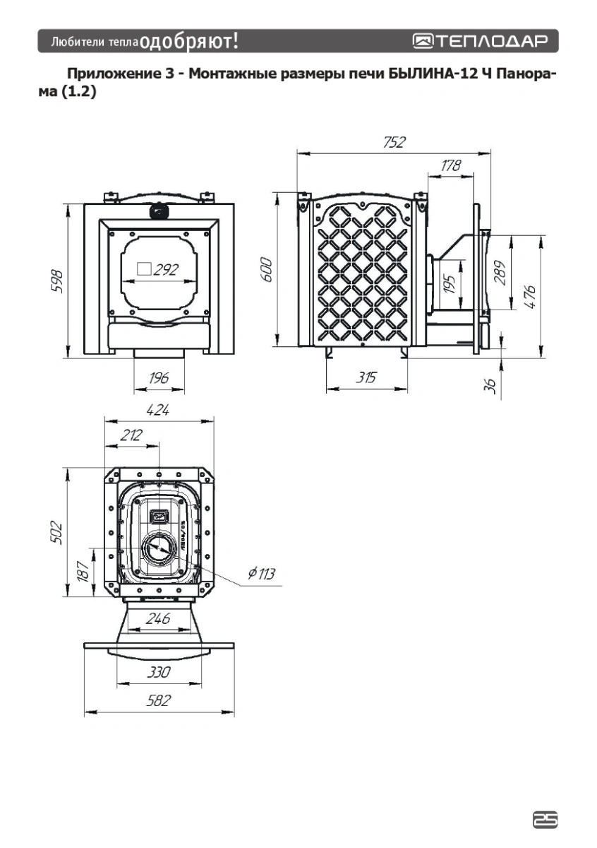 Предлагаемая дровяная печь "Былина" от производителя "Теплодар" предназначена для бань объемом парной до 12 кубических метров. Изготовлена из надежного чугуна толщиной 10 мм. Конструктивно оборудована конвекционным кожухом, диаметром дымохода 115 мм., выносной топкой и дверцей типа "Панорама". Размеры модели (ШхВхГ): 430x645x780 мм. Масса изделия – 88 кг., рассчитана на размещение камня массой до 55 кг. Производится в России. Купить в ТЕРМОСФЕРЕ.ПРО