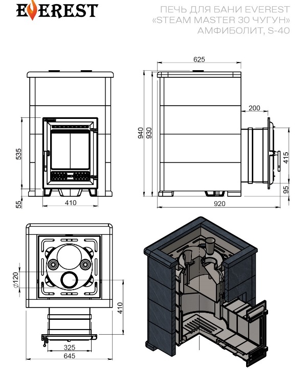 Баня – это здоровье и релакс! Печь «Steam Master 30» от бренда Everest поможет создать идеальную атмосферу: — Быстрое равномерное прогревание помещения до 30 куб.м благодаря чугунному корпусу толщиной 8мм; — Стеклянная дверца позволяет наслаждаться видом пламени; — Закрытая каменница вмещает 65кг камня — много пара и долгого сохранения тепла! Чудесно подходит для больших бань, произведена в России из качественного амфиболита.