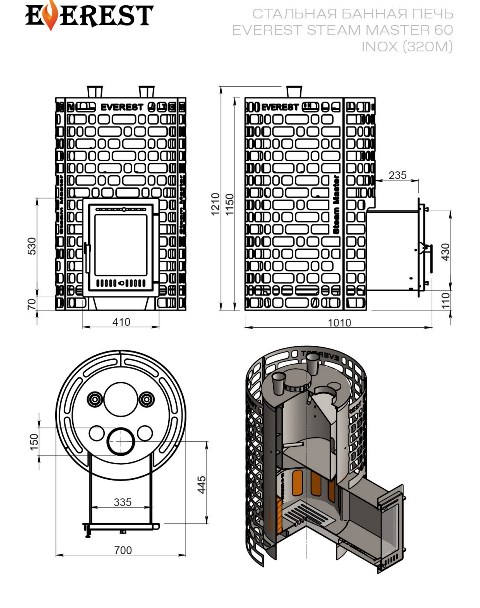 Печь «Эверест Steam Master» — идеальный выбор для коммерческих бань! Объем парной до 60 м³ обслуживается легко благодаря мощному нагреву из нержавеющей стали 6 мм. Дверца со стеклом позволяет любоваться огнем, а закрытая каменка вместимостью 310 кг обеспечивает долгий прогрев и поддержание комфортной температуры. Выносная топка упрощает загрузку дров, делая эксплуатацию удобной и эффективной. Выгодно и надежно - парных с больших объемом.