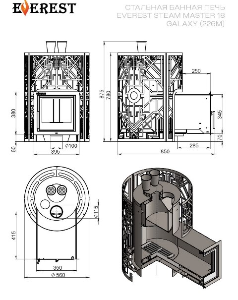 Баня — это отдых души и тела! Подарите себе истинное удовольствие с дровяной печью «Steam Master» Galaxy 18 от бренда EVEREST из России. Удобство выносной топки, закрытая каменка на 115кг камня, панорамное стекло двери создадут уютную атмосферу безопасности и комфорта. Теплоотдача идеально подходит для парных объемом до 18м³. Стержень банного благополучия — сталь толщиной 4мм и сетка-кожух. Дополнительный бонус — доступная цена при высоком качестве сборки России! Печь из стали 09Г2С, каменка нержавейка 430.