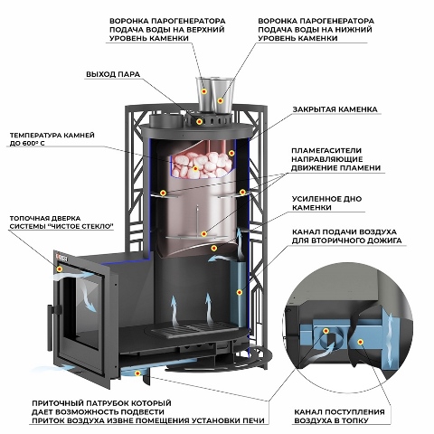 Откройте секреты идеального пара вместе с банной печью «Эверест Steam Master Galaxy 24»! Выберите комфорт и безопасность закрытого типа каменки из качественной нержавеющей стали! - Надежность — печь выполнена по ГОСТу из высококачественной жаропрочной стали марки 09Г2С; - Удобство обслуживания благодаря выносной топке; - Эффективное отопление помещения объёмом до 24 кубических метров всего от одной закладки дров; - Прочный стальной кожух-сетка обеспечит долгий срок службы без потери внешнего вида. Создайте свой идеальный микроклимат с российской продукцией премиум-класса!