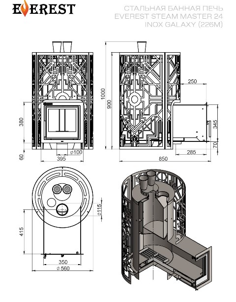 Элегантность дизайна и высокая эффективность – печь для бани Everest Steam Master Galaxy 24 Innox идеально подходит для парных объемом до 24 м³ из нержавеющей стали толщиной 3 мм. Закрытая каменка позволяет долго сохранять тепло, а выносная топка облегчает загрузку дров. Кладка камня массой до 115 кг обеспечивает густой и целебный пар. Подходит для саун российского производства, обеспечивая идеальный микроклимат и комфорт банных процедур.